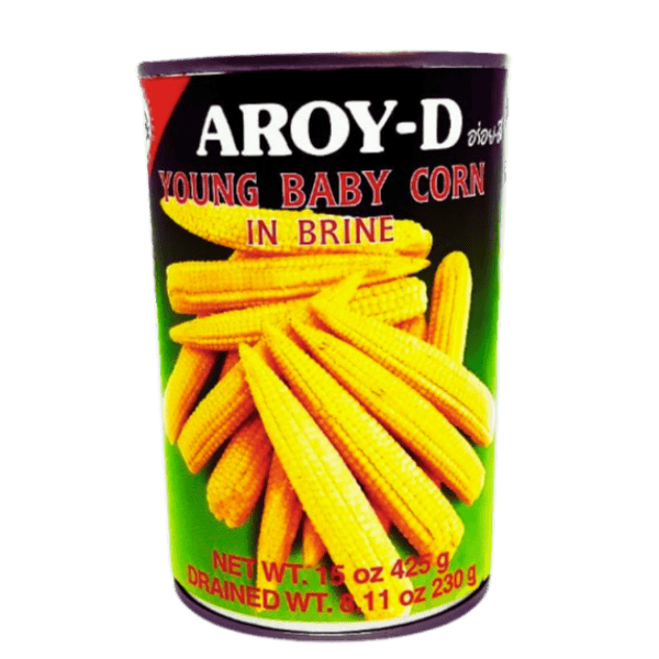 Hel babymajs konserverad i saltlag – mild, krispig och klar att användas direkt i matlagning. Idealisk för wok, sallader, grytor eller som tillbehör i asiatiska rätter. Aroy-D garanterar hög kvalitet och autentisk smak.